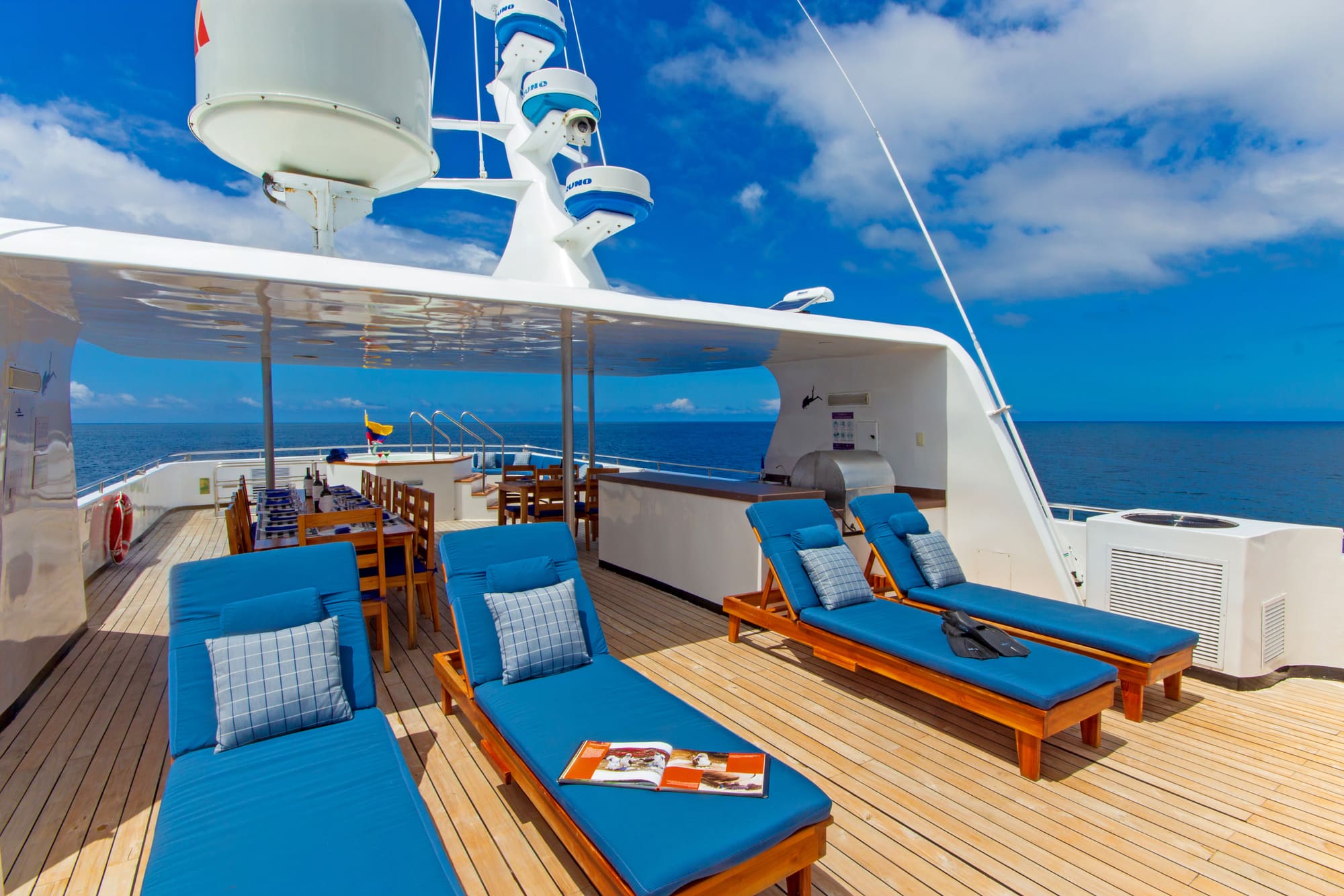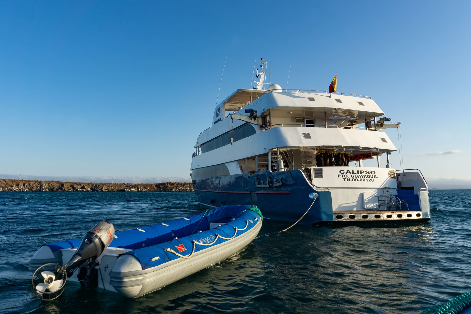 Calipso is a small first-class expedition yacht offering a comfortable, well-appointed base for exploring the Galápagos at an intimate scale. With just 16 guests, the onboard atmosphere is friendly and personal, pairing a relaxed rhythm with the practical comfort that makes early starts, active days, and downtime between landings feel easy.