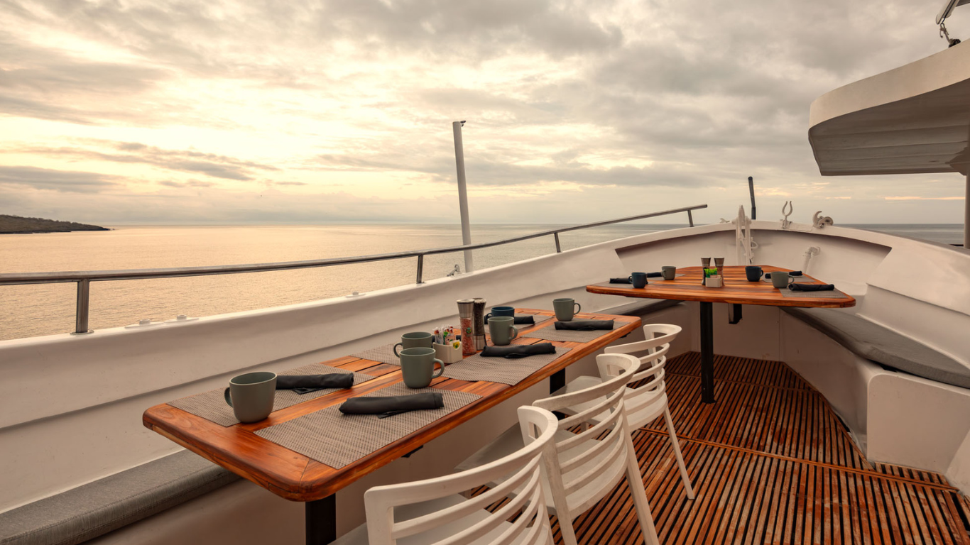 Legend offers one of the widest ranges of cabin categories in the Galápagos, allowing guests to balance size, views, and outdoor space according to preference. Cabins emphasize comfort and practicality, with higher categories adding panoramic windows or private balconies for an enhanced onboard experience.