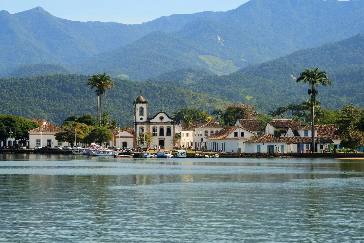 Incorporate a colonial coastal town between São Paulo and Rio for preserved streets and calm bay scenery.