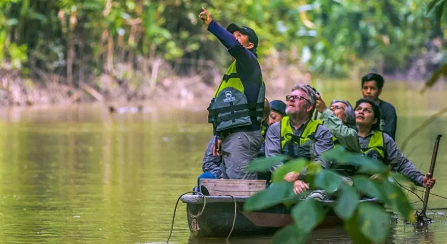 Spend full days exploring the Amazon with resident naturalist guides. Activities may include guided jungle walks, river excursions, wildlife observation, and night outings. Daily programming is adapted to weather and wildlife activity.